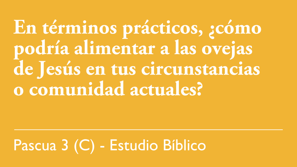 - En términos prácticos, ¿cómo podría alimentar a las ovejas de Jesús en tus circunstancias o comunidad actuales?