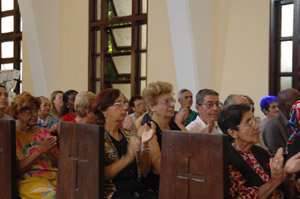 The congregation at the Cathedral of the Holy Trinity in Havana, Cuba, applaud Presiding Bishop Frank Griswold after he preaches a sermon in Spanish February 26.   (ENS photo by Bob Williams)