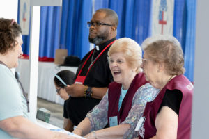 La inscripción in situ para la Convención General se abrió hoy, con la ayuda de muchos voluntarios y la reunión de amigos. En la conferencia de prensa de apertura participaron el obispo primado Michael Curry, el secretario y director ejecutivo de la Convención General, Michael Barlowe, y la presidente de la Cámara de Diputados, Julia Ayala Harris. // Fotos de Randall Gornowich.