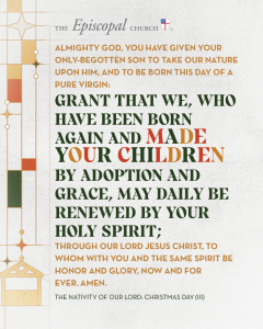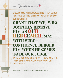 The collects for the Christmas season were designed by Jason Franklin, a designer and communications director who helps Episcopal churches and organizations share their stories through thoughtful design and branding. His work can be found at franklinian.com.