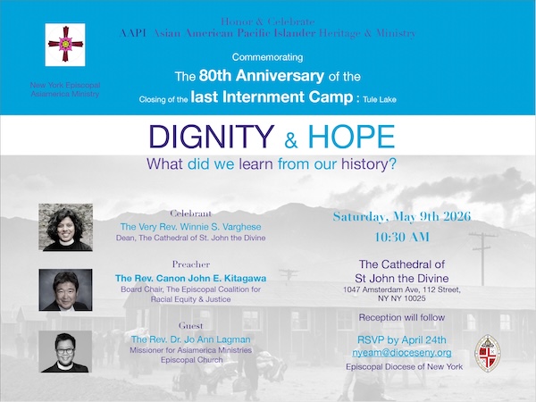 Honor and celebrate Asian American Pacific Islander (AAPI) heritage and ministry in this joint commemoration of the closing of Tule Lake, the WWII last internment camp, with AAPI Ministries and the Episcopal Diocese of New York.