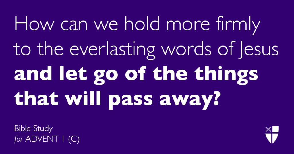 - “Heaven and Earth will pass away, but my words will not pass away.” How can we hold more firmly to the everlasting words of Jesus and let go of the things that will pass away?