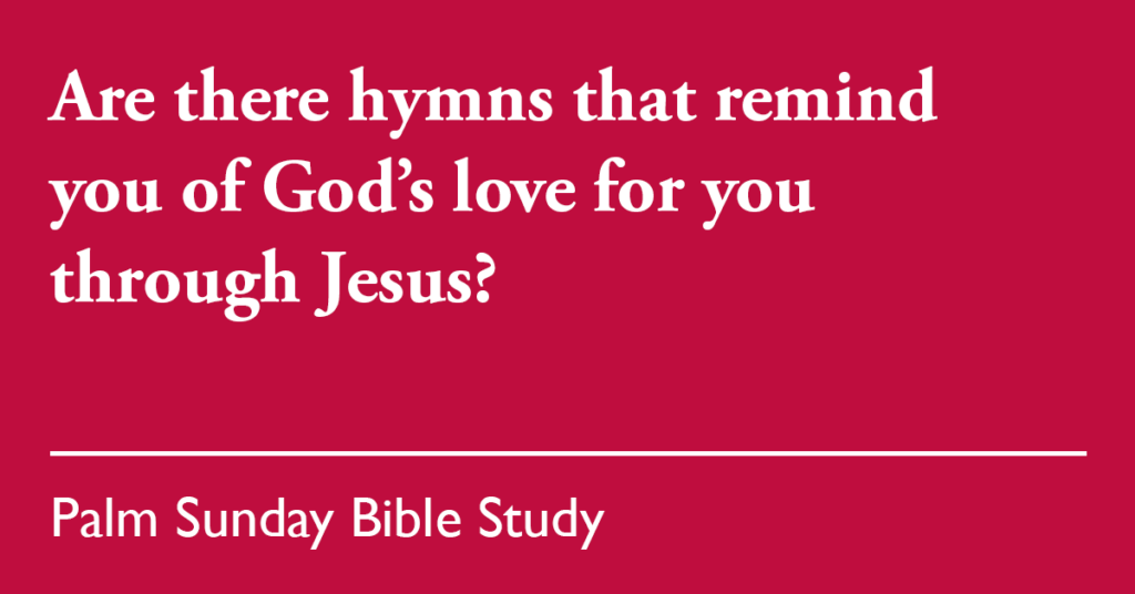 - Are there hymns that remind you of God’s love for you through Jesus?