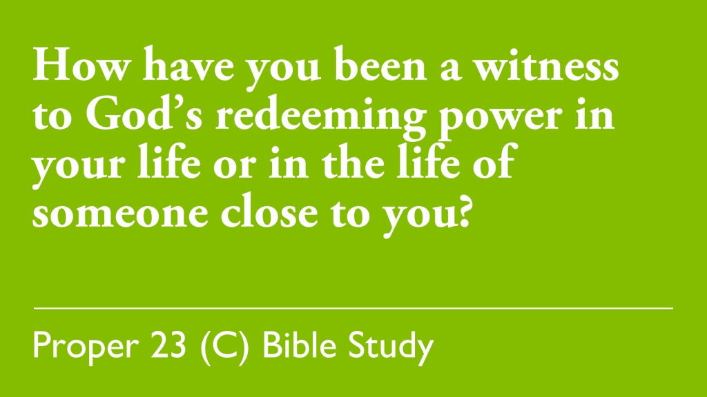 - How have you been a witness to God’s redeeming power in your life or in the life of someone close to you?