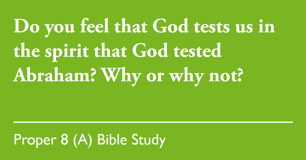 - Do you feel that God tests us in the spirit that God tested Abraham? Why or why not?