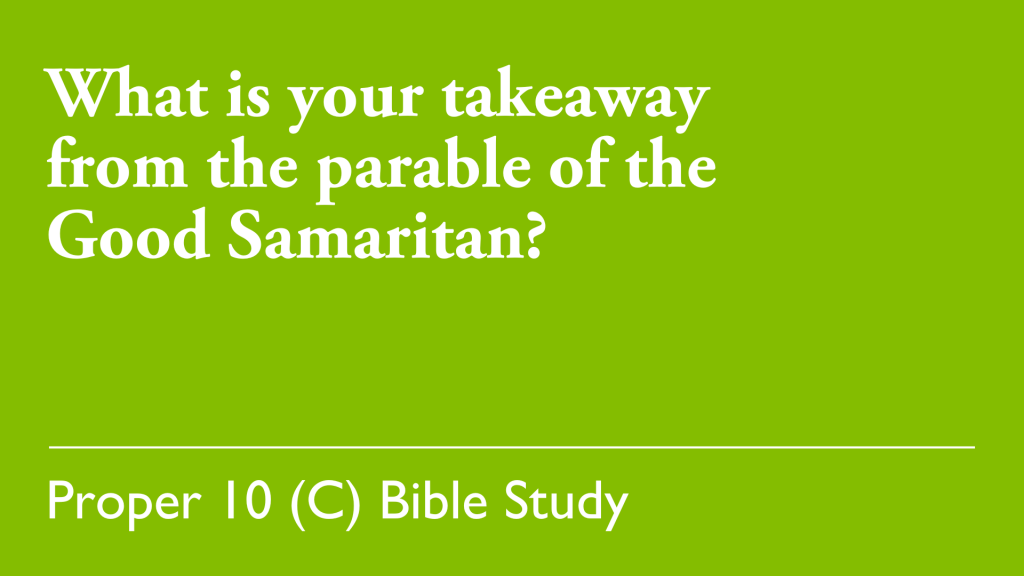 Graphic asking "What is your takeaway from the parable of the Good Samaritan?"