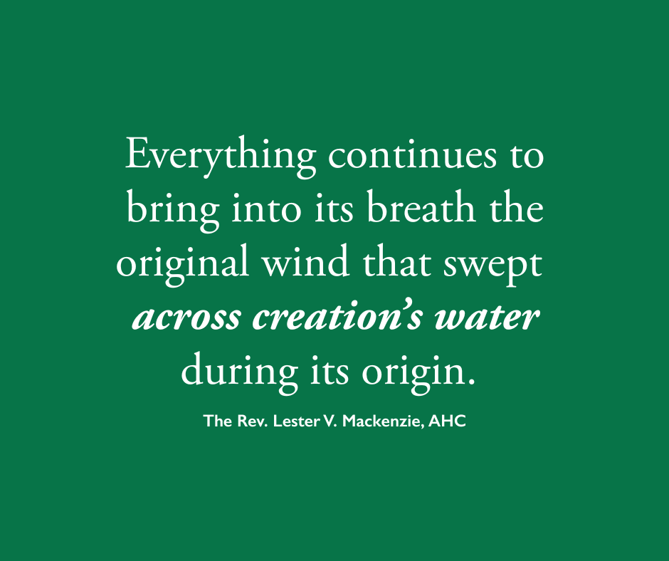 Every tree. Every heartbeat. Everything continues to bring into its breath the original wind that swept across creation’s water during its origin.