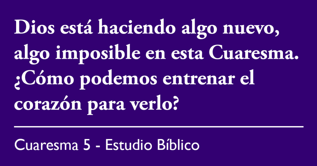 - Dios está haciendo algo nuevo, algo imposible en esta Cuaresma. ¿Cómo podemos entrenar el corazón para verlo? Discuta esto con un amigo. Comparta y escuche la vida santa con los que le rodean.