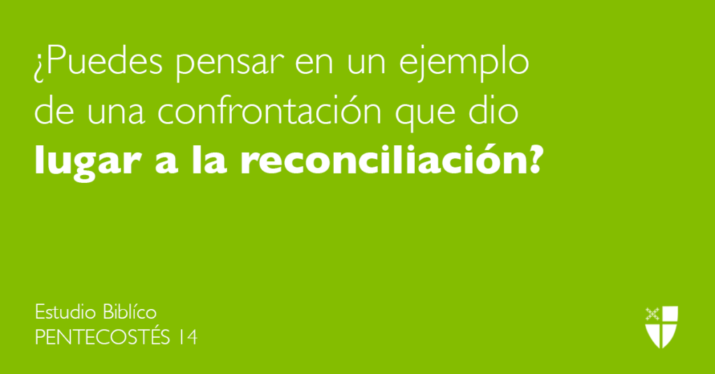 - ¿Puedes pensar en un ejemplo de una confrontación que dio lugar a la reconciliación? ¿Cuáles son algunos pasos prácticos a tomar que podrían dar lugar a la reconciliación después de la confrontación?