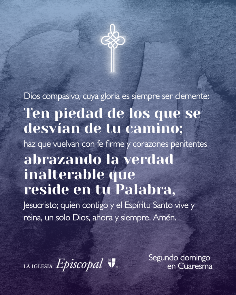 Dios compasivo, cuya gloria es siempre ser clemente: Ten piedad de los que se desvían de tu camino; haz que vuelvan con fe firme y corazones penitentes abrazando la verdad inalterable que reside en tu Palabra, Jesucristo; quien contigo y el Espíritu Santo vive y reina, un solo Dios, ahora y siempre. Amén.