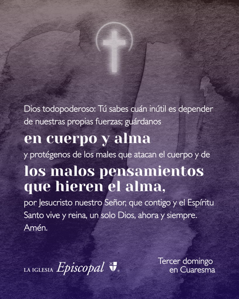Dios todopoderoso: Tú sabes cuán inútil es depender de nuestras propias fuerzas; guárdanos en cuerpo y alma y protégenos de los males que atacan el cuerpo y de los malos pensamientos que hieren el alma. por Jesucristo nuestro Señor, que contigo y el Espíritu Santo vive y reina, un solo Dios, ahora y siempre. Amén.