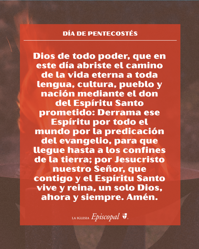 En este día, el Espíritu se derrama, abriendo el camino de la vida a todos los pueblos y a todos los lugares. El aliento de Dios llena a la iglesia, enviándonos a proclamar, a servir y a amar de maneras que renueven el mundo. Oramos para que este don se encienda de nuevo en nosotros, para que podamos participar de la vida del Espíritu Santo y llevarla hasta los confines de la tierra. #Episcopal