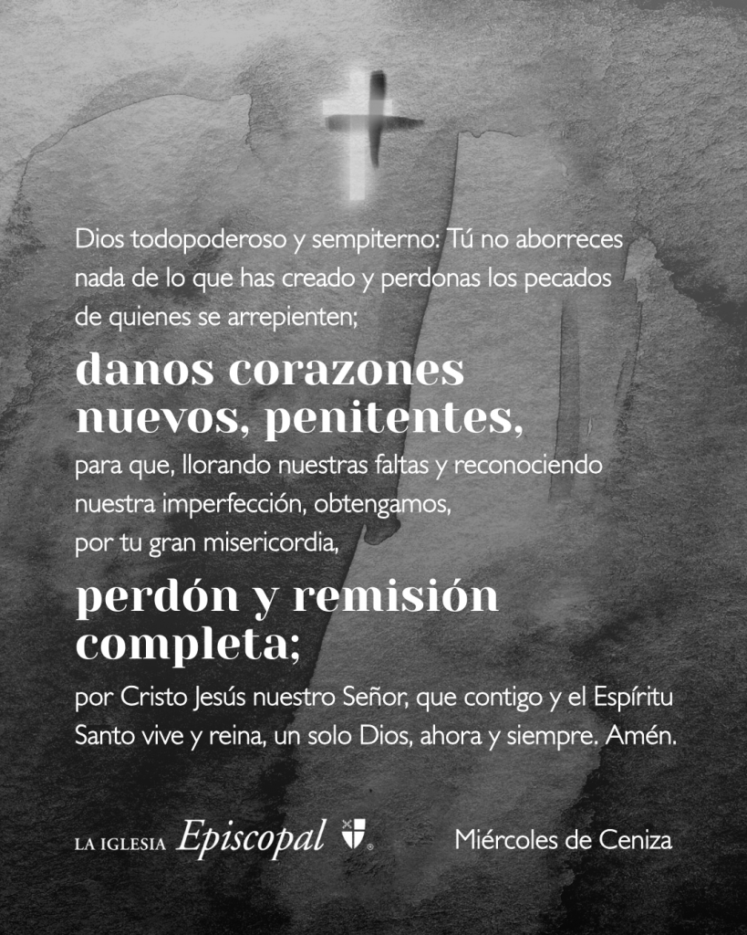 Dios todopoderoso y sempiterno: Tú no aborreces nada de lo que has creado y perdonas los pecados de quienes se arrepienten; danos corazones nuevos, penitentes, para que, llorando nuestras faltas y reconociendo nuestra imperfección, obtengamos, por tu gran misericordia, perdón y remisión completa; por Cristo Jesús nuestro Señor, que contigo y el Espíritu Santo vive y reina, un solo Dios, ahora y siempre. Amén.
