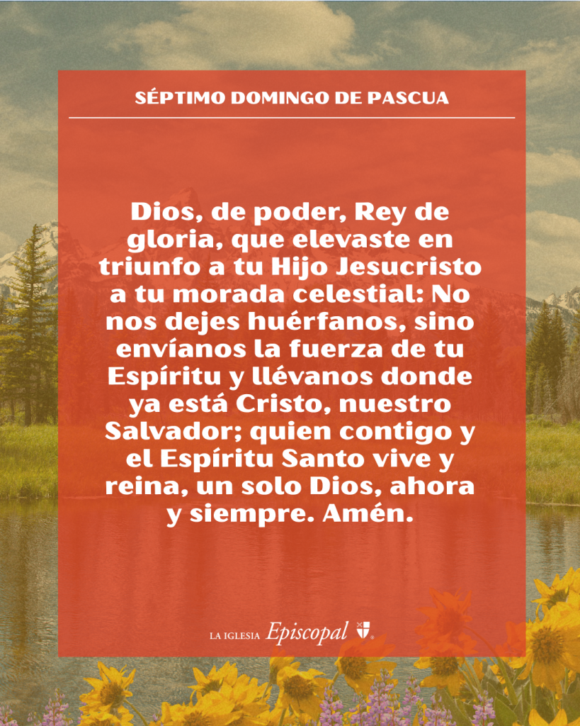 Dios, de poder, Rey de gloria, que elevaste en triunfo a tu Hijo Jesucristo a tu morada celestial: No nos dejes huérfanos, sino envíanos la fuerza de tu Espíritu y llévanos donde ya está Cristo, nuestro Salvador; quien contigo y el Espíritu Santo vive y reina, un solo Dios, ahora y siempre. Amén.