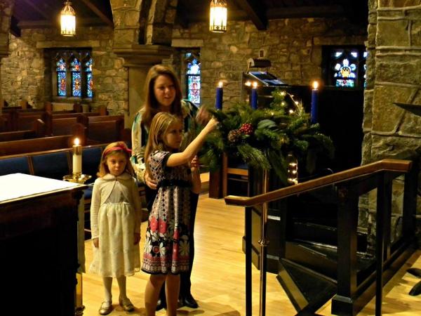 Lighting the candle on the Advent Wreath at the start of service, 2nd Sunday of Advent, Grace Episcopal Church, Brunswick MD Photo Credit: Art Reid