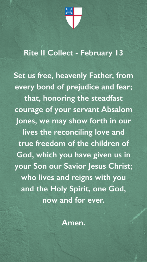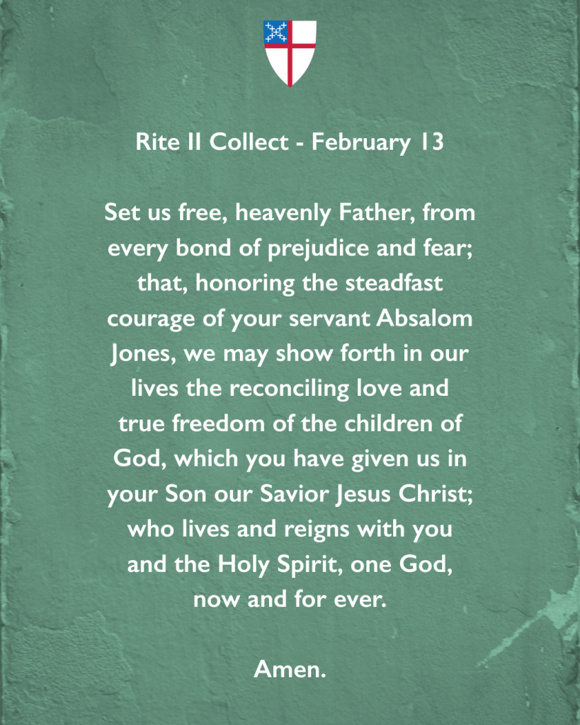 “…that, honoring the steadfast courage of your servant Absalom Jones, we may show forth… the reconciling love and true freedom of the children of God…” #Episcopal