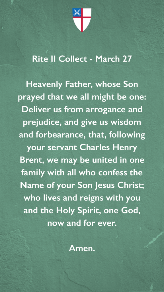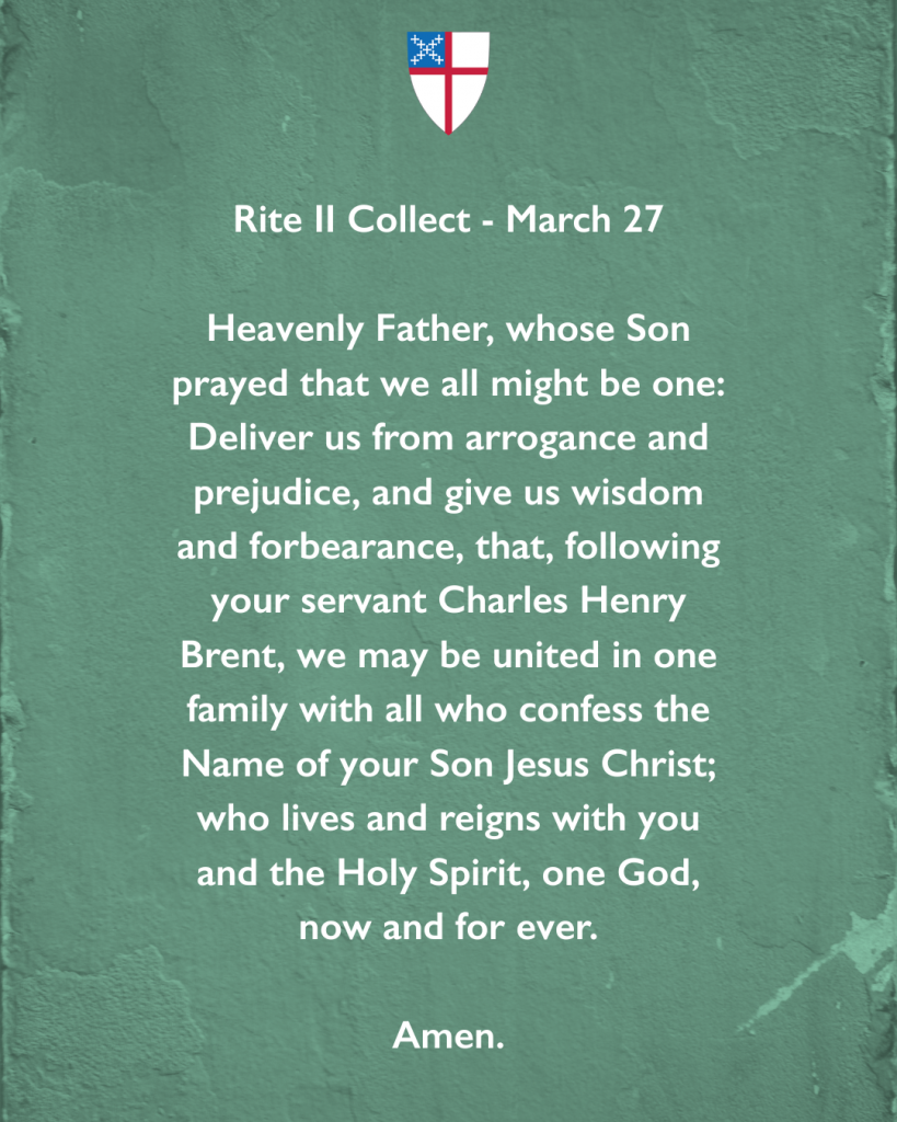 “…that, following your servant Charles Henry Brent, we may be united in one family with all who confess the Name of your Son Jesus Christ…” #Episcopal
