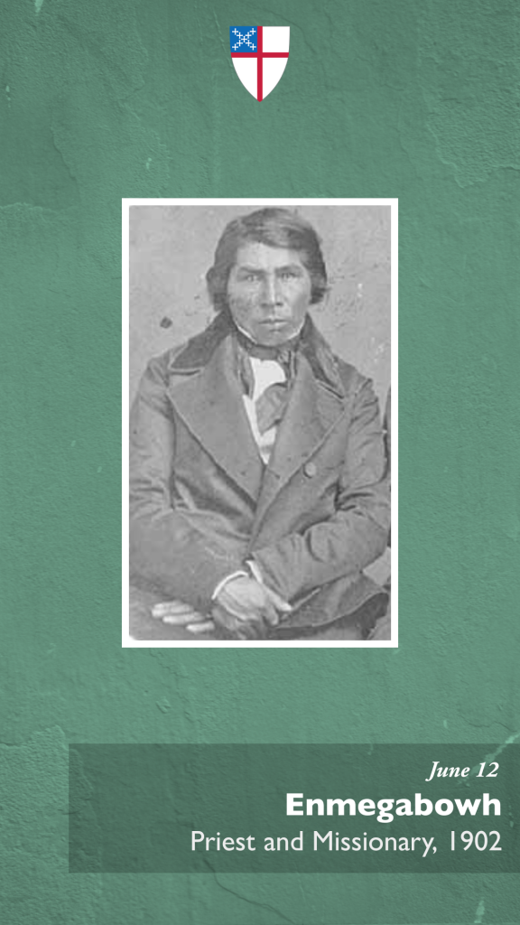 Sample Text: We commemorate Enmegahbowh, the first recognized Native American priest in The Episcopal Church. Raised in both Christian and traditional Odawa ways, he embraced a life of mission and peace-making. He founded churches and trained Indigenous leaders, helped mediate between warring tribes, and shaped the future of Native ministry through language, culture, and music. His name, meaning “The one who stands before his people,” reflects his role as a bridge-builder and faithful servant.