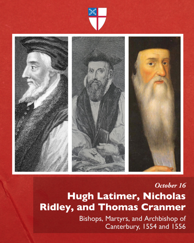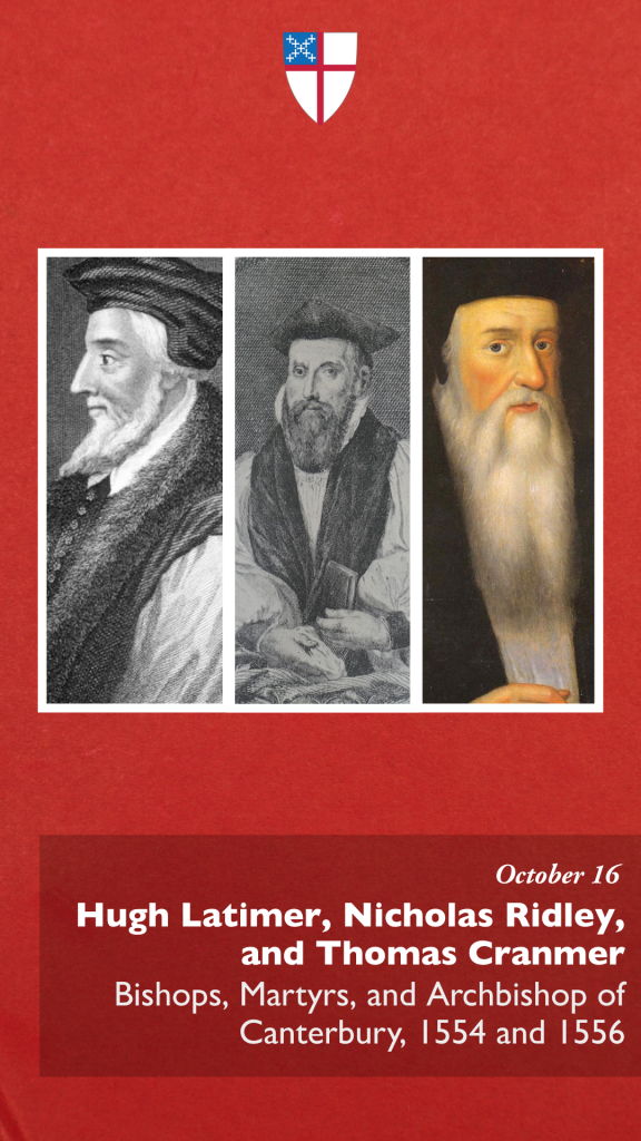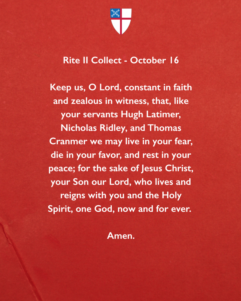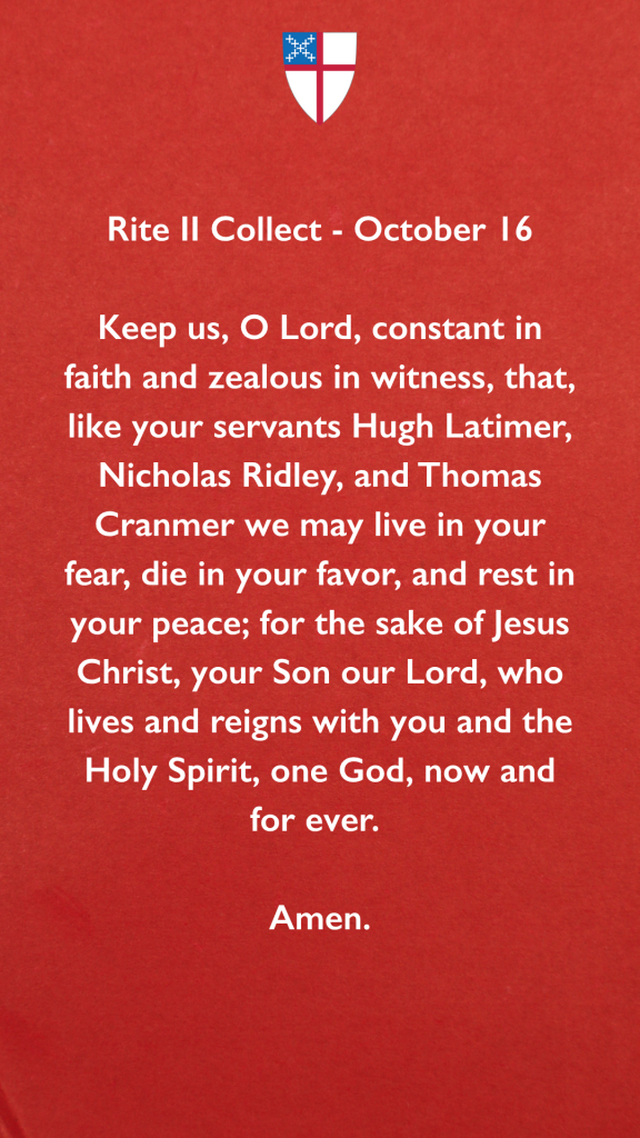 “…that, like your servants Hugh Latimer, Nicholas Ridley, and Thomas Cranmer we may live in your fear, die in your favor, and rest in your peace…” #Episcopal