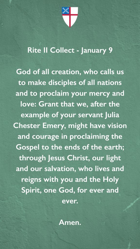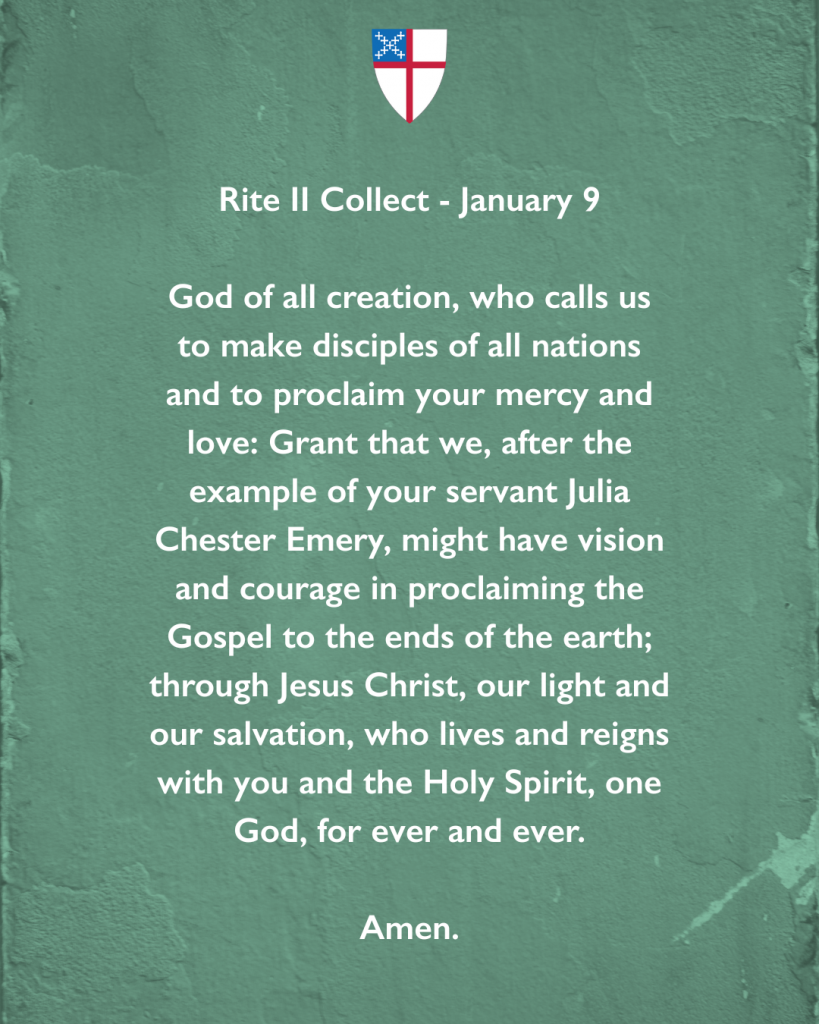 “That we, after the example of your servant Julia Chester Emery, might have vision and courage in proclaiming the Gospel to the ends of the earth…” #Episcopal