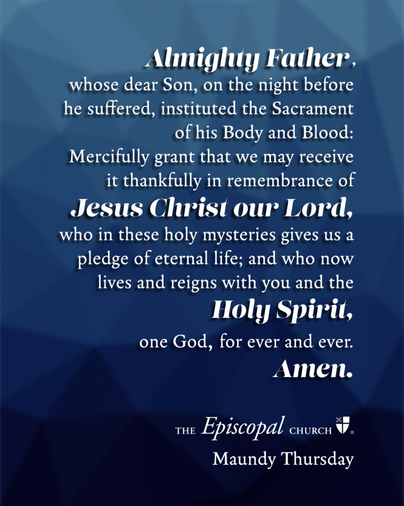 The Holy Week collect graphics were designed by Liz Williams, communications manager for the Episcopal Diocese of Georgia in Savannah. She serves on the board of Episcopal Communicators and is passionate about encouraging and empowering congregations to share the Gospel with creativity and love. #Episcopal