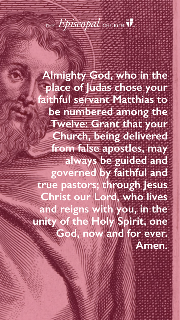 Almighty God, who in the place of Judas chose your faithful servant Matthias to be numbered among the Twelve: Grant that your Church, being delivered from false apostles, may always be guided and governed by faithful and true pastors; through Jesus Christ our Lord, who lives and reigns with you, in the unity of the Holy Spirit, one God, now and for ever. Amen.