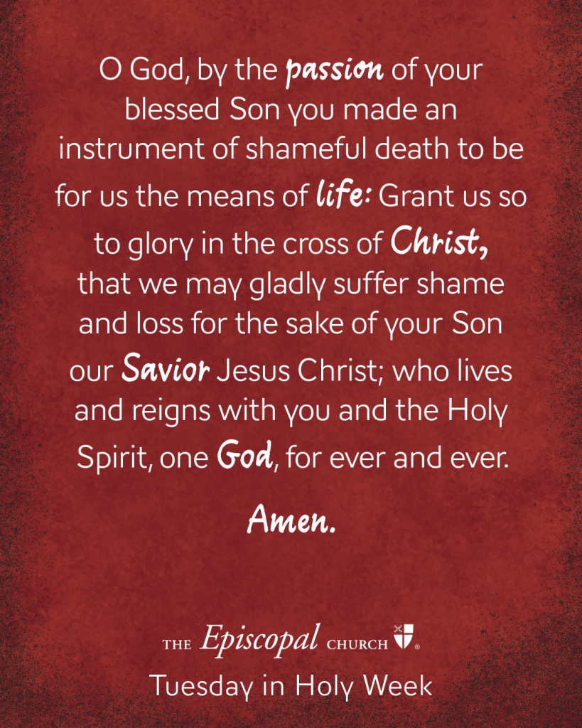 O God, by the passion of your blessed Son you made an instrument of shameful death to be for us the means of life: Grant us so to glory in the cross of Christ, that we may gladly suffer shame and loss for the sake of your Son our Savior Jesus Christ; who lives and reigns with you and the Holy Spirit, one God, for ever and ever. Amen.