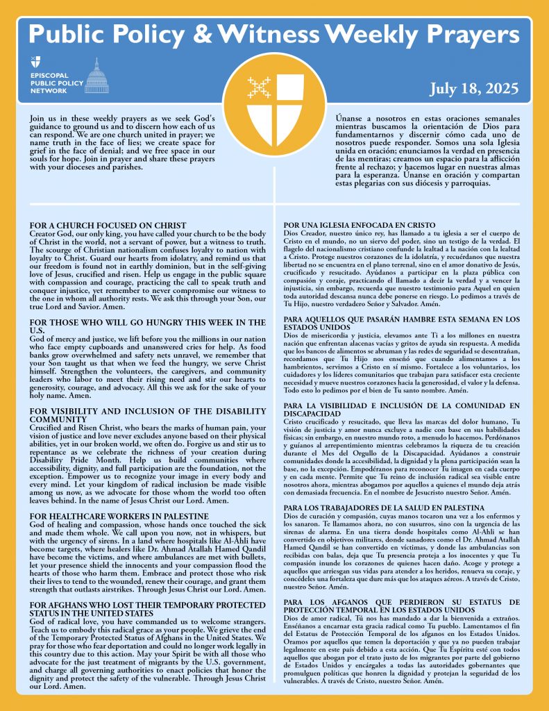 Como iglesia, nuestra defensoría continúa, y los invitamos a unirse a nosotros.  La Red Episcopal de Políticas Públicas cuenta con alertas semanales de acción, recursos, seminarios web y capacitaciones. Entérese más aquí.