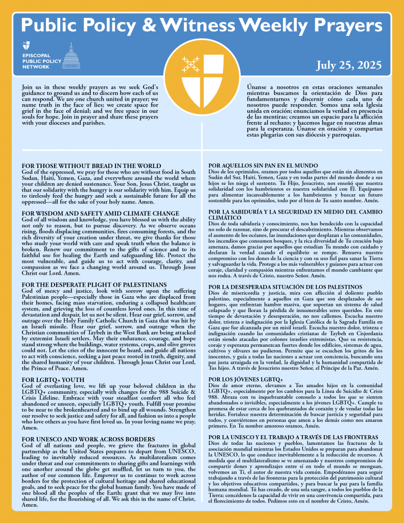 As a church, our advocacy continues, and we invite you to join us. The Episcopal Public Policy Network has weekly action alerts, resources, webinars, and trainings. Learn more here.