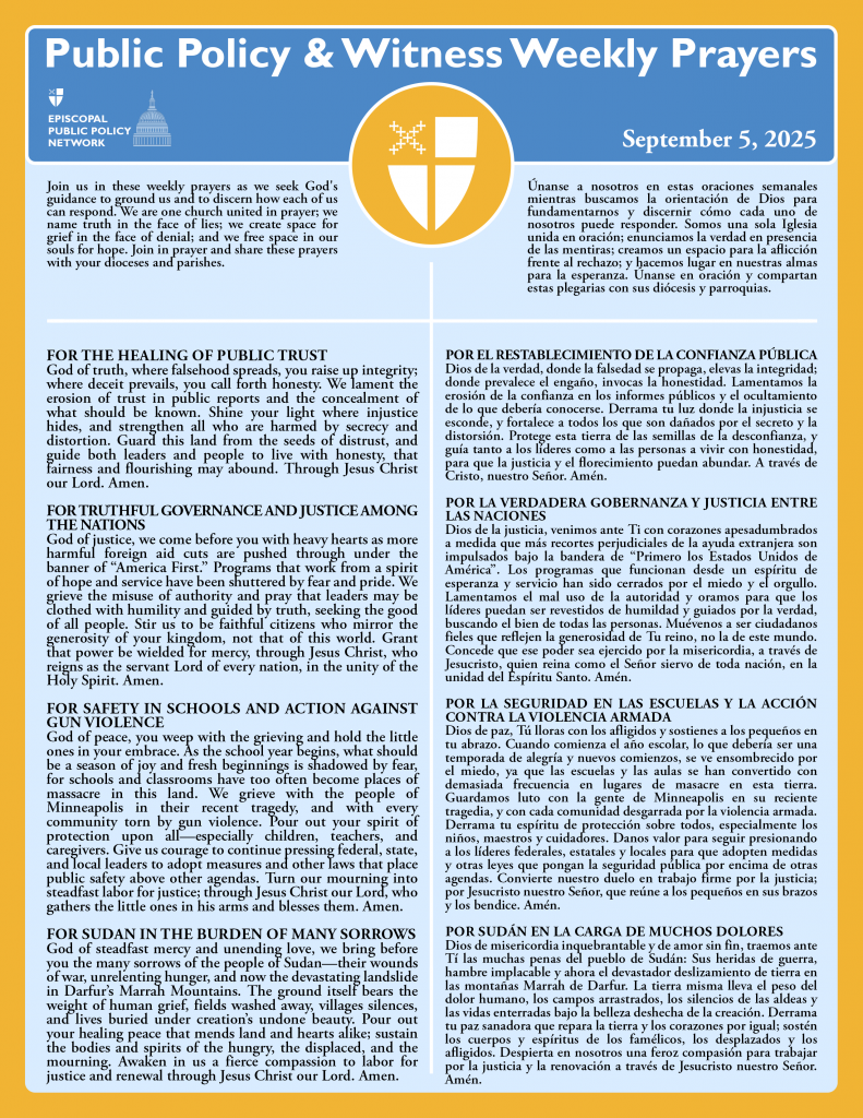 As a church, our advocacy continues, and we invite you to join us. The Episcopal Public Policy Network has weekly action alerts, resources, webinars, and trainings. Learn more here.