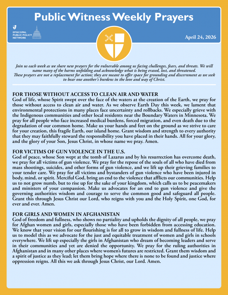 Public Witness Weekly Prayers – April 24