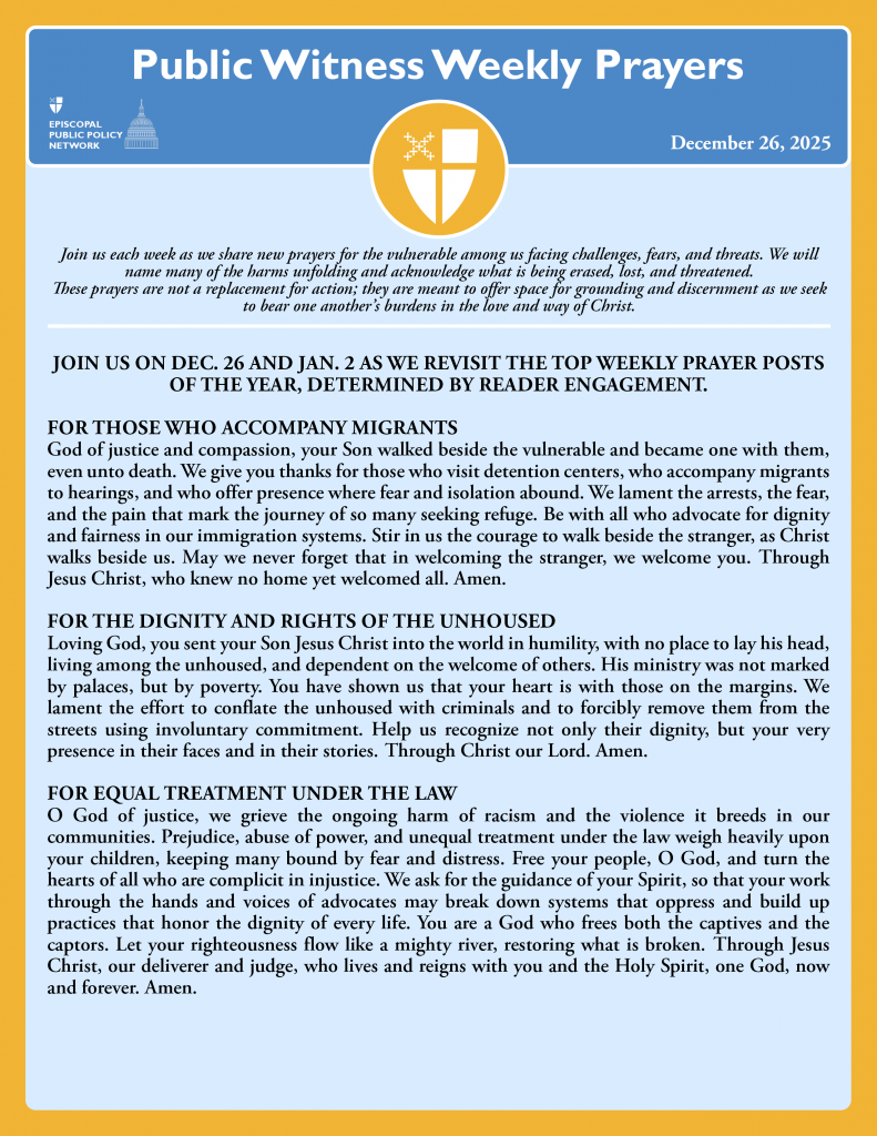 Public Witness Weekly Prayers – December 26