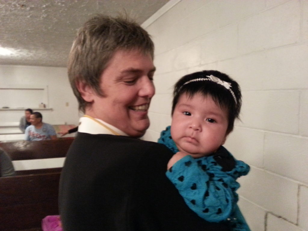 One evening was spent at St. Andrew’s, Cherry Creek, where we baptized two young children. After the liturgy concluded, a group of teen-aged boys gathered around a traditional drum and sang songs while other children danced throughout the room with great joy. Not long after the drumming and singing began, a boy of about ten years of age pulled up a chair next to the drum, drumstick in hand, and joined in on the drumming. He would stay in time