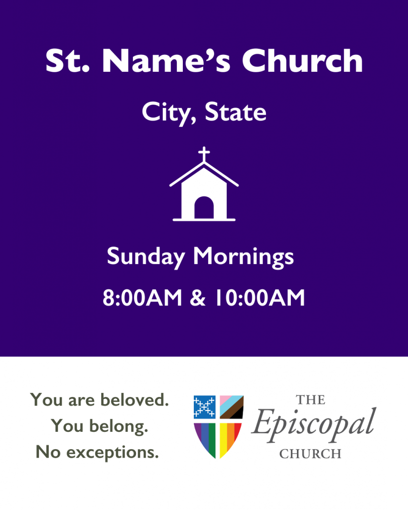 LGBTQ+ in the Church Customizable Social Media Posts and Cards Click the images below to create your posts in Canva. Add your church’s information and share away! Instagram Facebook Printable Postcards Contact:Aaron ScottStaff Office for Gender Justicereconciliation@episcopalchurch.org