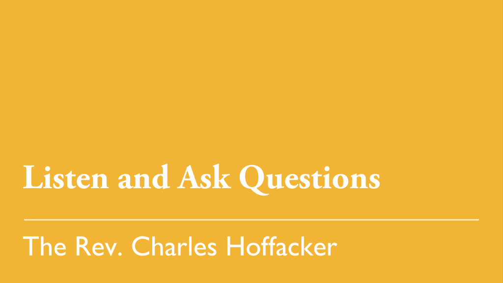 Nowadays it seems that listening is scarce and becoming scarcer. Whatever their age or education or place, everybody’s got an opinion, and everybody’s willing to share theirs. But the blessed silence of someone listening is more than the simple absence of speech. It is a place where education can happen, where wisdom can appear. No guarantees; just possibilities!