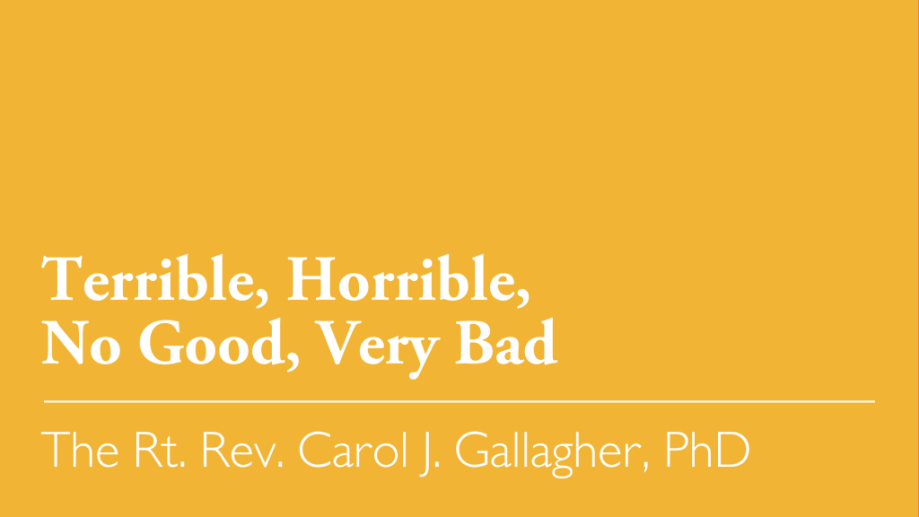 In 1972, Judith Viorst wrote a wonderful book for children, Alexander and the Terrible, Horrible, No Good, Very Bad Day. She was a mother with three young boys and made them characters in this book. It is a favorite for many simply because it is a real story about real challenges and real love. Often, those who write and work with children are the best theologians, because they live in the real world and are not hidden away in academia. Even those of us who love to study and learn can understand that. And often too, children are our best teachers and theologians.