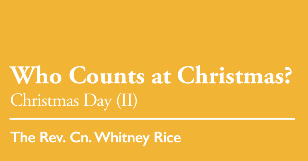 Hear the message of Christmas and write it on your heart: you count. You matter. You are important. God is so in love with you that God sent God’s only Son to live and dwell among you, to teach you and heal you, to die for you and rise for you. And the deeper you take that knowledge into you, the freer and braver you are to tell that to every single person you meet.