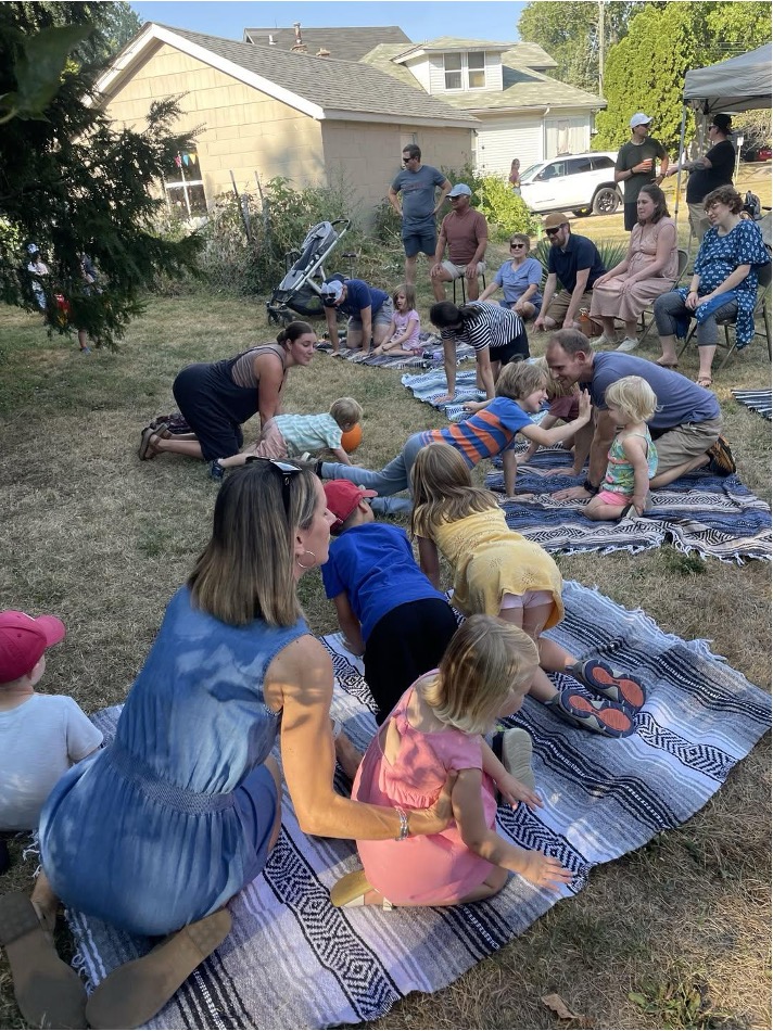 “On a warm February day, we gathered outside with children in our laps and listened to a friend read a book about the ways her Mandarin Chinese family shows love. As she shared her joy, a profound peace enveloped us all. Unbeknownst to me, her family was celebrating New Year’s Eve in China at that very moment. She missed them. That morning, our “Care-Free Playgroup” unmasked our shared humanity, and our longing for spiritual connection & community. We ask big questions, know Love and know God.” – Jennifer Fisher