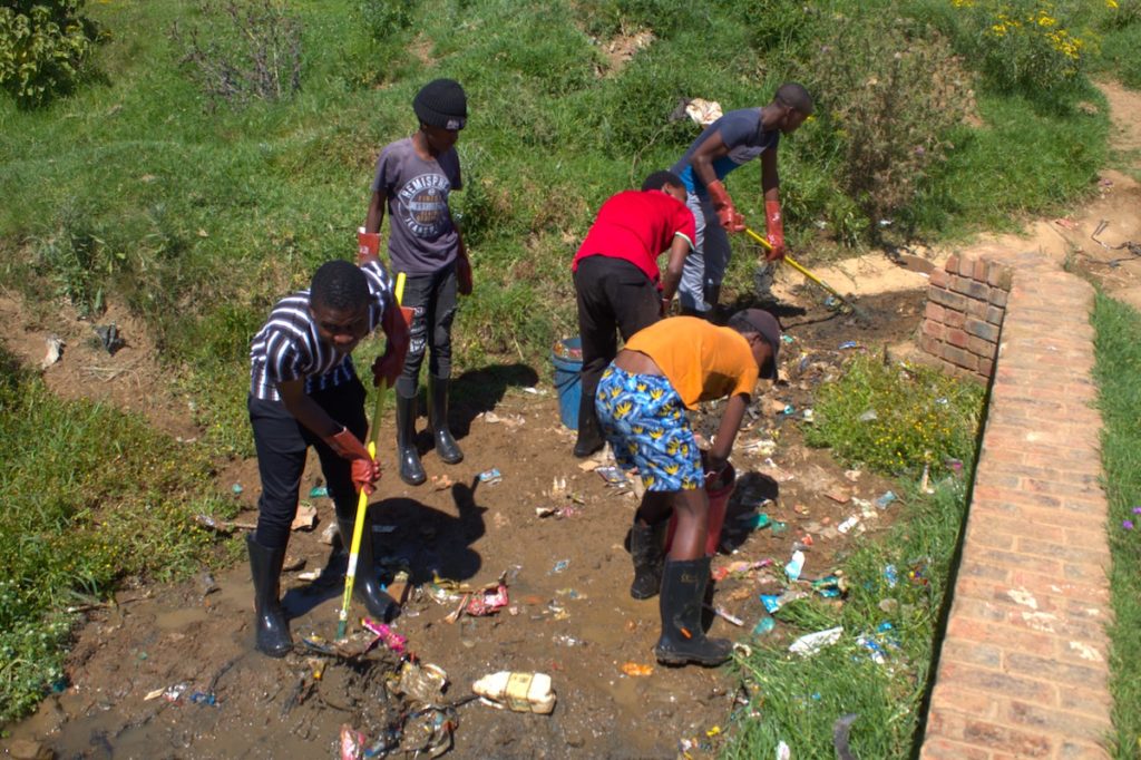 The project aimed to train, educate, and support a group of high school learners to become environmental change-makers in their community. After an initial phase in 2022 where the group of high school learners took part in the cleanup of different waterways in Makhanda, it was decided to adopt one specific river at the end of 2022 where cleanup efforts, community campaigns, and media production would take place. This was done in order to have more long-term impact in one area instead of spreading the resources too thinly. The river chosen was located in the relatively impoverished community of Vukani. (The name Vukani in isiXhosa fittingly means “Wake up!”)